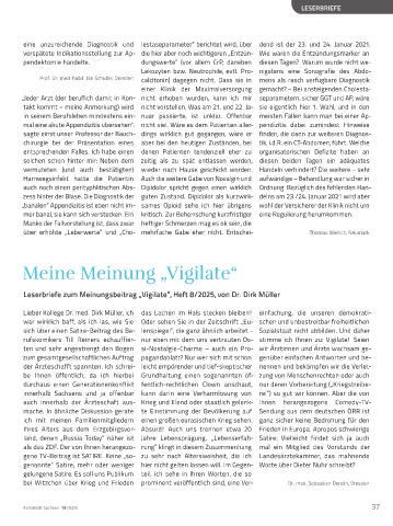 Leserbriefe zum Meinungsbeitrag „Vigilate“, Heft 8/2025, von Dr. Dirk Müller
