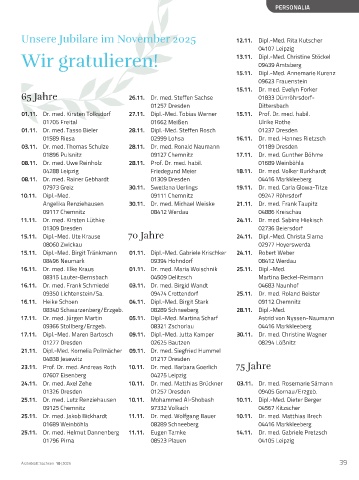Unsere Jubilare im November 2025 12.11. Dipl .-Med . Rita Kutscher