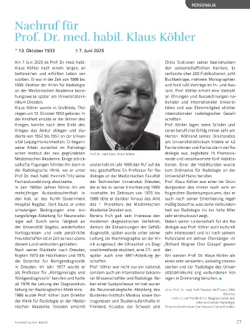 in Dresden . Im Jahr 1977 wurde er Prof . Köhler war nicht nur ein national, sierten und der Radiologie des Univer-
